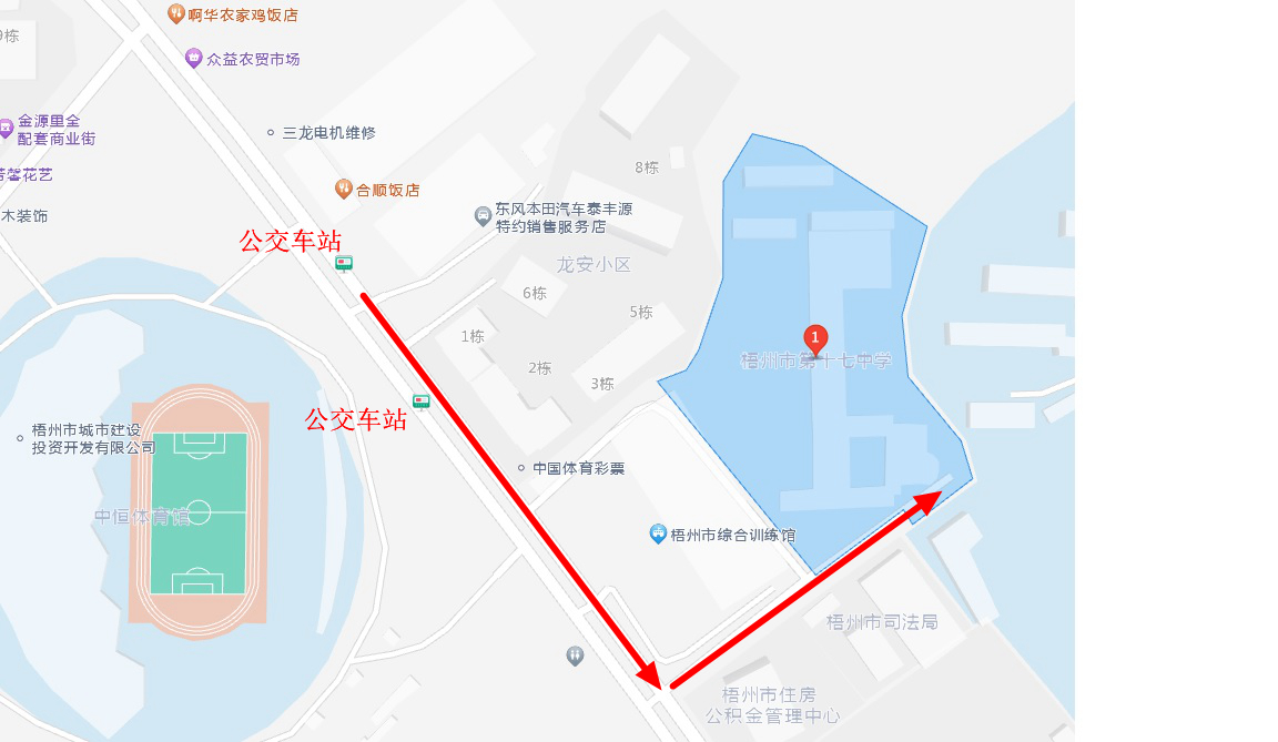 公交車參考:10路、32路、49路、49路延長線、蒼梧城鄉(xiāng)6路。進(jìn)入梧州學(xué)院校區(qū)統(tǒng)一在東大門進(jìn)入,考點(diǎn)門口處于交通干道,送考車輛只能在東門外短暫停留,南門及其他門不得進(jìn)入無法核驗考生身份。