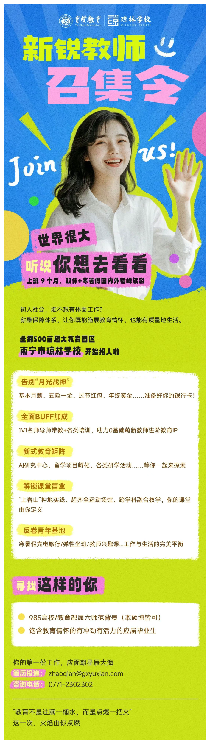2025年南寧市良慶區(qū)瓊林學(xué)校新銳教師招聘公告
