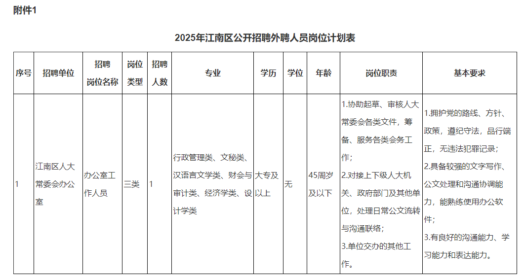 1.2025年江南區(qū)公開招聘外聘人員崗位計(jì)劃表