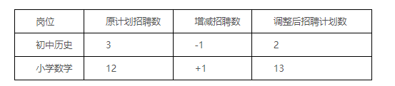 按照《2025年玉林市玉州區(qū)特崗教師招聘公告》中“招聘崗位計劃招聘人數與通過資格復審通過人數的比例達到1:3的方可開考。達不到開考比例的,減少該崗位的招聘數,空出的崗位計劃數可調劑到生源充足的其他學科崗位使用。調劑方案經玉州區(qū)特崗教師招聘領導小組審定。”的規(guī)定,由于初中歷史崗位計劃招聘3人,資格復審通過實際人數為7人,未達到開考比例。經玉州區(qū)特崗教師招聘領導小組同意,初中歷史崗位招聘人數減少1人,減少的崗位調整到生源較充足的小學數學崗位使用,具體調整如下: