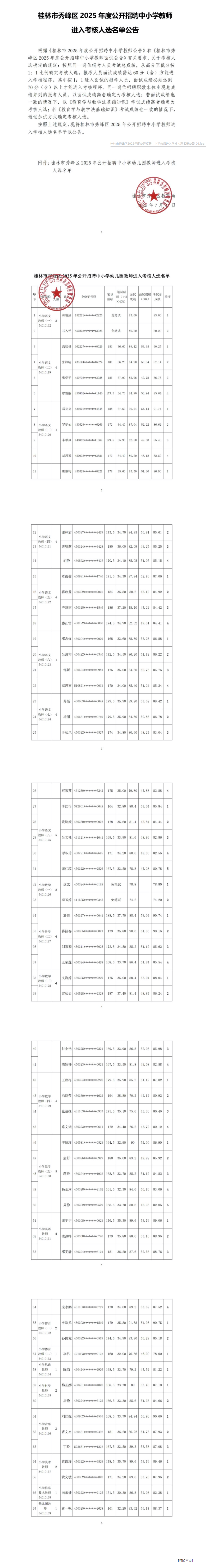 桂林市秀峰區(qū)2025年度公開招聘中小學(xué)教師進(jìn)入考核人選名單公告