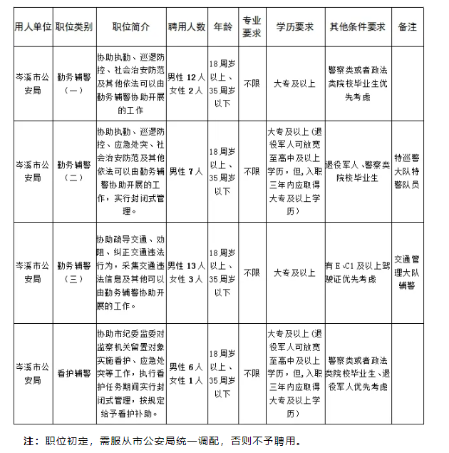 1.本次招聘的輔警依法履行輔助性工作職責,由公安機關管理使用,不具有人民警察和公務員身份,不行使人民警察職權,不辦理編制手續(xù),在公安機關及其人民警察的指揮和監(jiān)督下開展輔助性工作。