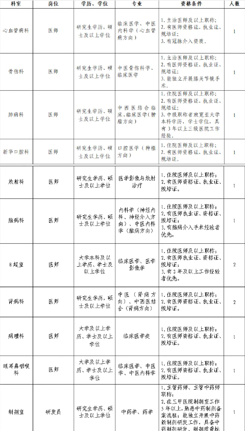 根據(jù)醫(yī)院高質(zhì)量發(fā)展需要,我院誠(chéng)聘衛(wèi)生醫(yī)療相關(guān)專(zhuān)業(yè)領(lǐng)域的人才,歡迎投簡(jiǎn)歷應(yīng)聘。