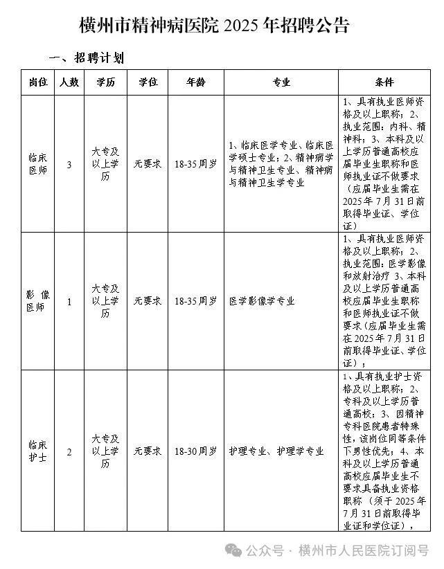 原文標(biāo)題:橫州市精神病醫(yī)院2025年招聘公告