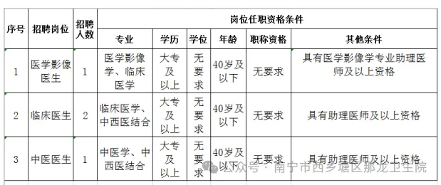 原文標題:2025年南寧市西鄉(xiāng)塘區(qū)那龍衛(wèi)生院公開招聘編外工作人員公告